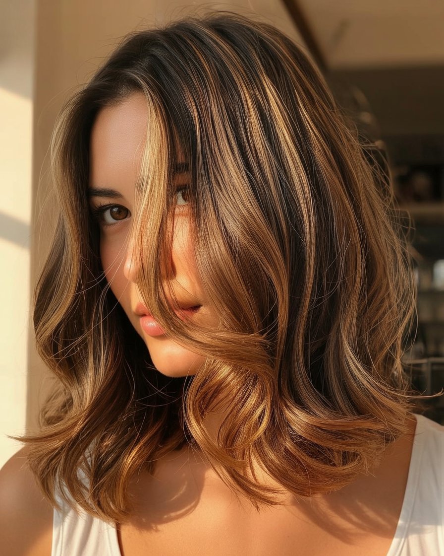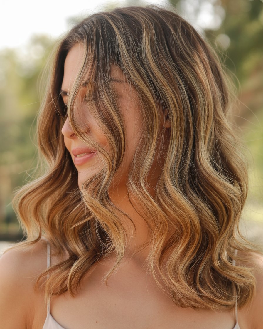 Cabello Medio Ondulado con Mechas Sutiles